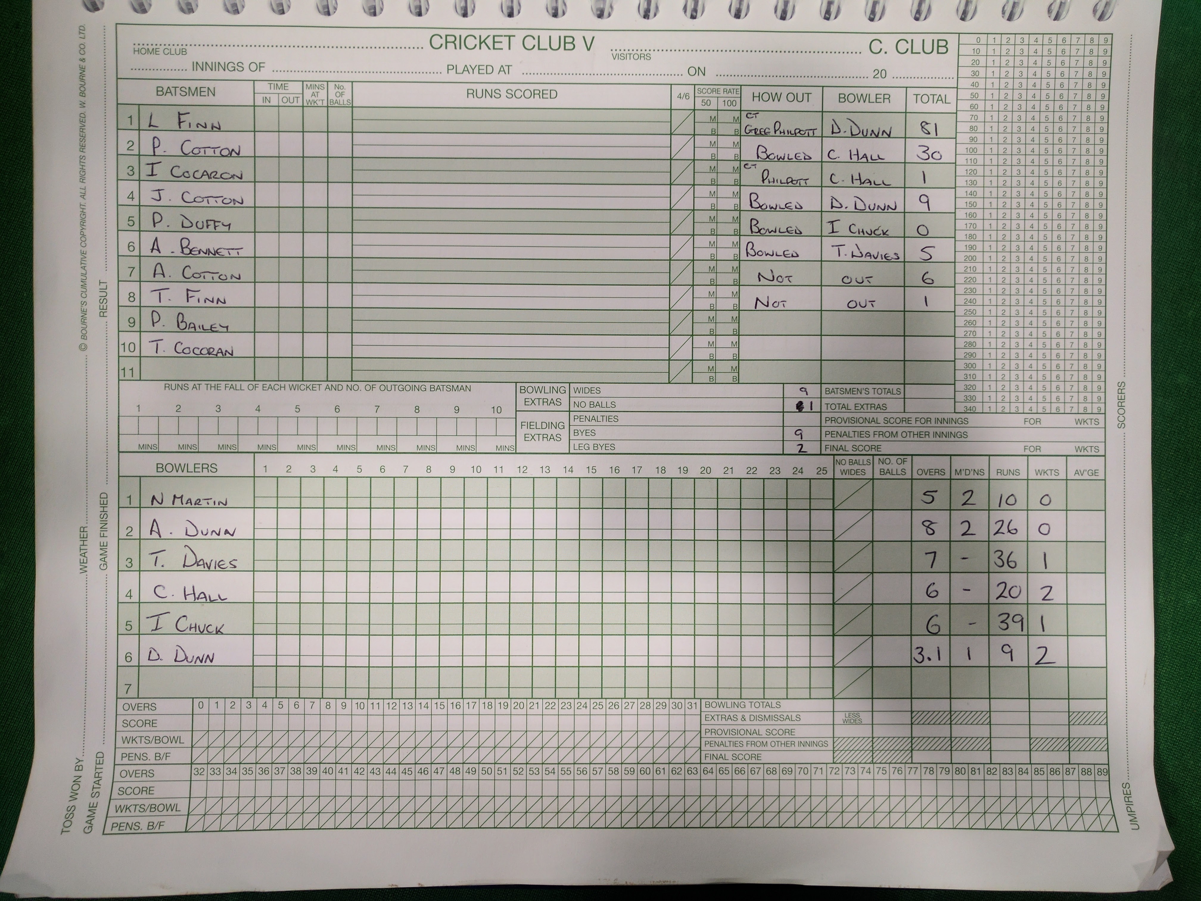 After the teas were demolished, the Elf set about defending their below par score with Nathan Martin and Nicka Dunn on season debut bowled some tight lines, their 13 overs going for less than 3 an over but neither man picked up a wicket.
