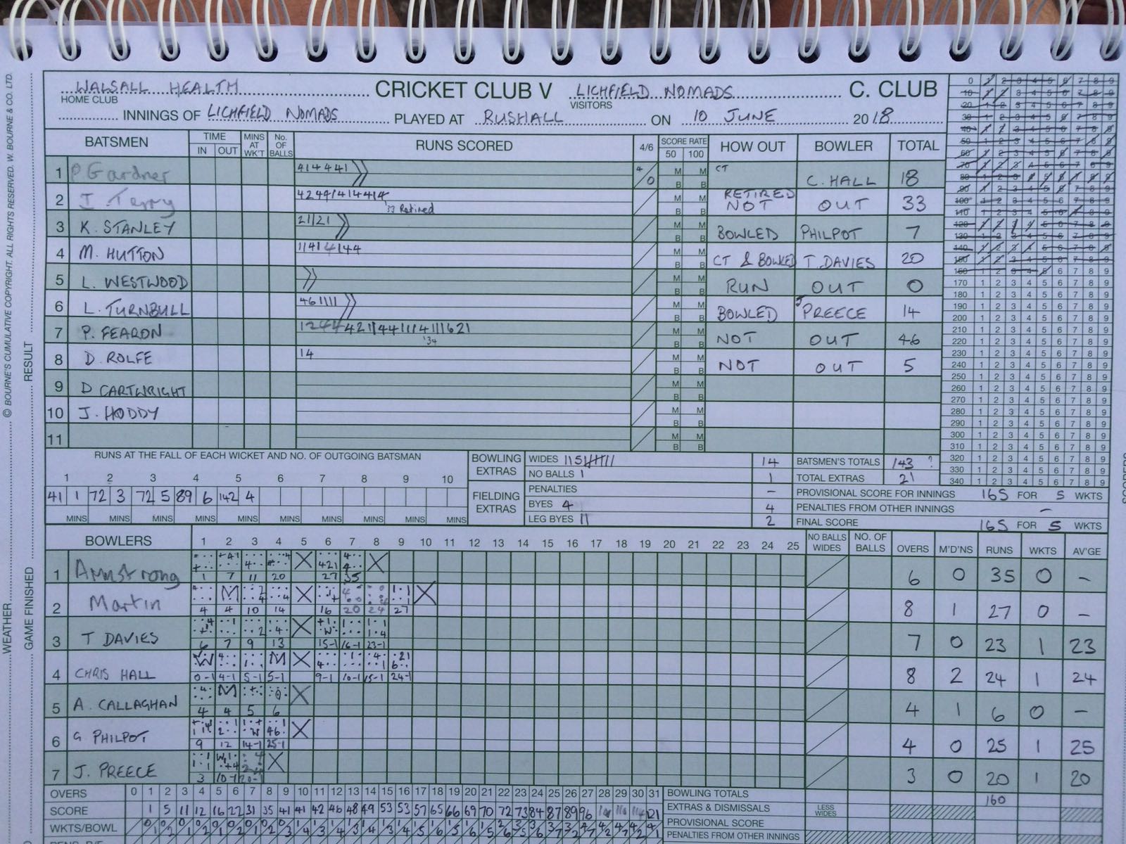 On loan from Rushall Andy Callaghan came in and scored with good time to get some more runs for his second club. Just after Chuck retired he went to umpire and obviously triggered Gort on 64 but who cares?
