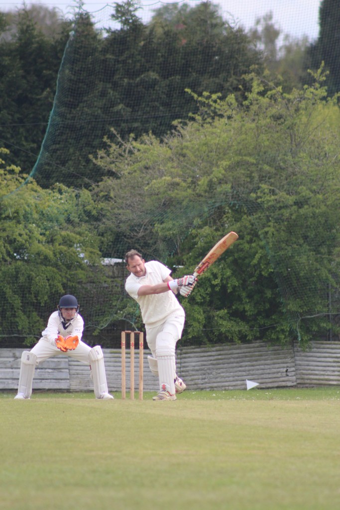 Up first to bat were Andy Gorton and Ian Chuck, could the pair continue to add to their tally of runs for the elf? Unfortunately it was not meant to be. Andy Gorton flicked a few down the leg side , before he was trapped in front by Ian Mitchell for 6. Out walked Andy Ince, well wintered and raring to go. Ian Chuck on the other hand, was steadily accumulating runs hitting a few lusty blows off the opening bowler s, before he succumbed to a full toss smacking it straight down mid-off’s throat. Out walked Alex Nunns who in true Nunns form ‘leant’ from the front . The partnership of Nunns and Ince accumulated runs at a good rate and even gave a few interesting moments when both men skied pulls, off the same bowler in the same over, only to see both fall safely. At 102 runs and approaching the drinks break, Abbots Bromley finally claimed the 3rd wicket when A Nunns pulled a full toss, yes another wicket on a full toss, to the man at square leg who took a catch that will have him raving to his son for many a year, rough luck Alex. With Ince set on 50 and looking dangerous, out walked Rob Hewlitt, who continued his fine form with some excellent shots, punishing full tosses, Chuck and Nunns were vigorously taking notes, and some excellent running between the wickets the score for the health continued to climb. At 153, Ince sadly fell to the bowling for Lowther for a well earned 80, Top knock Andy.