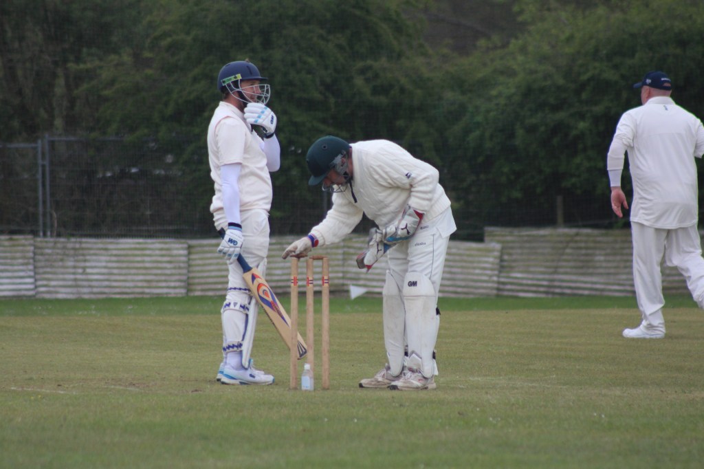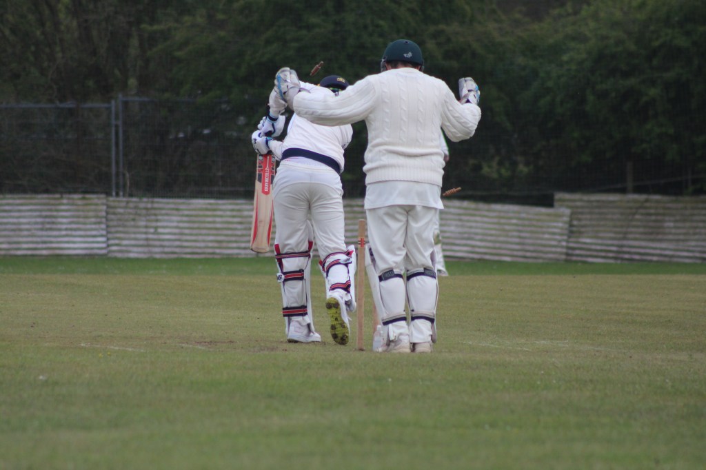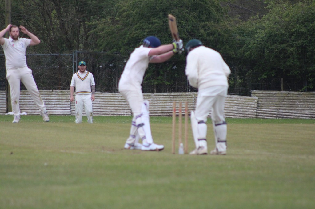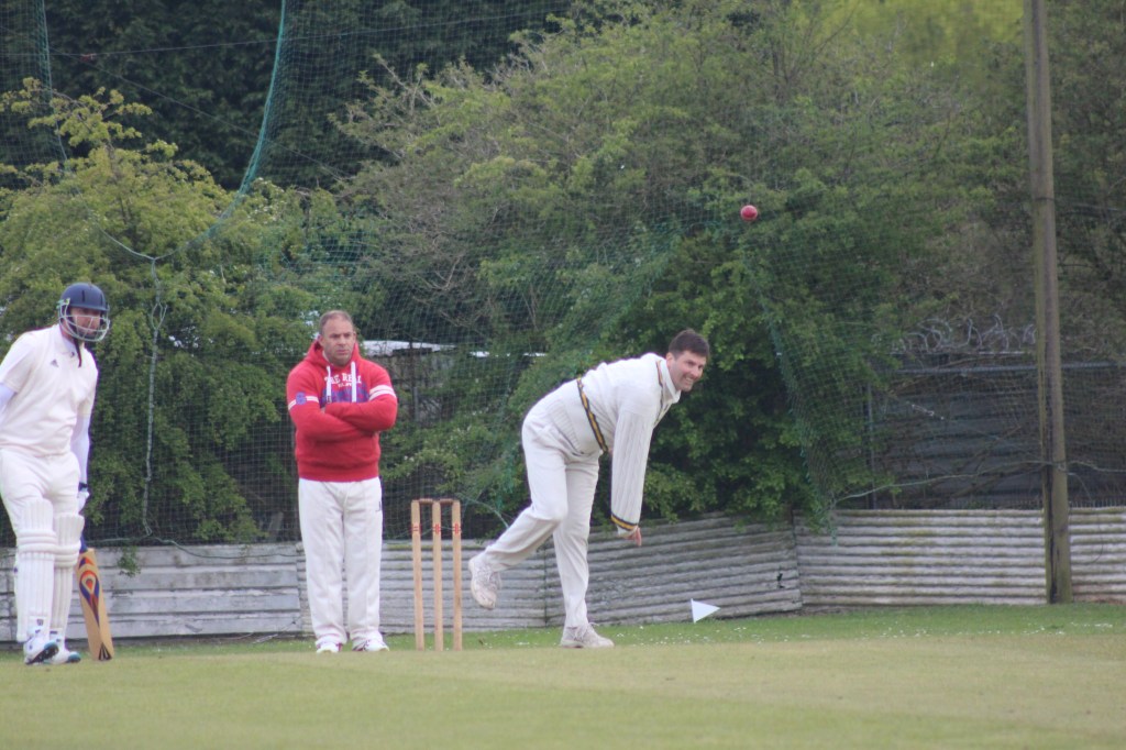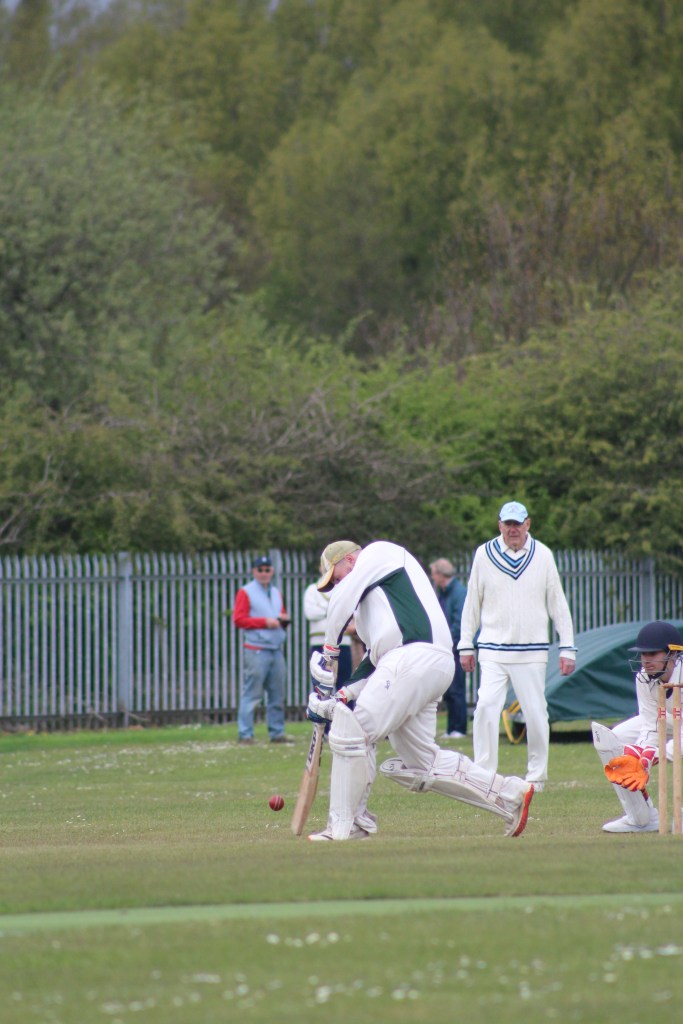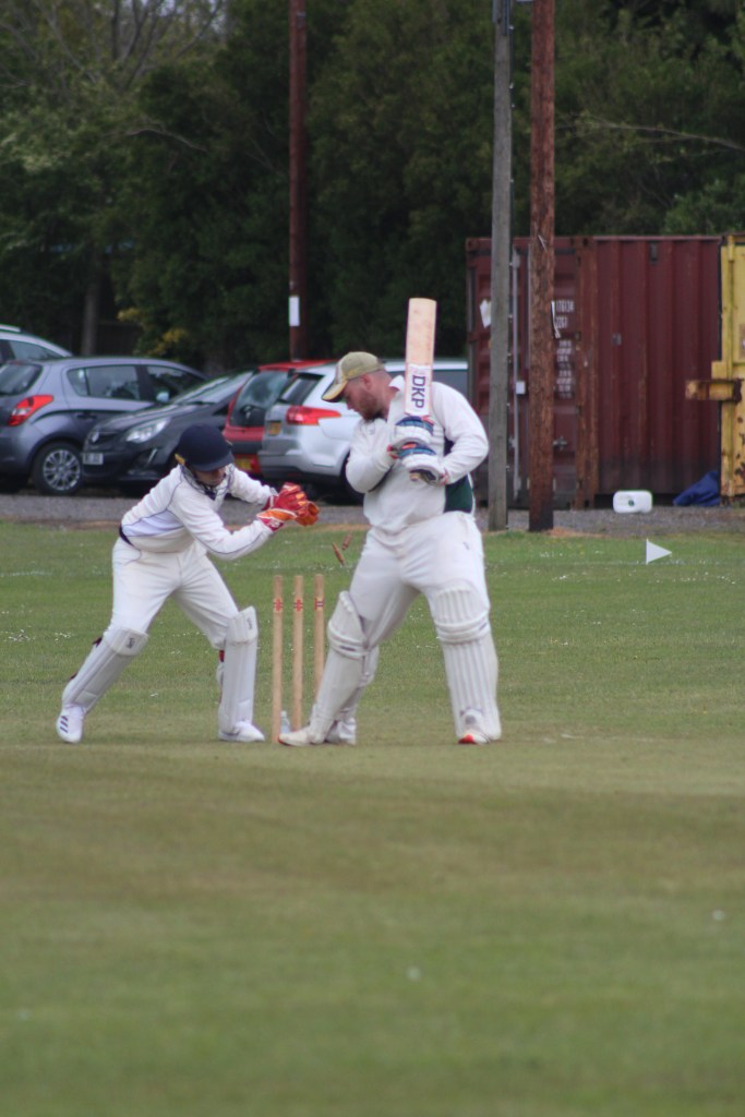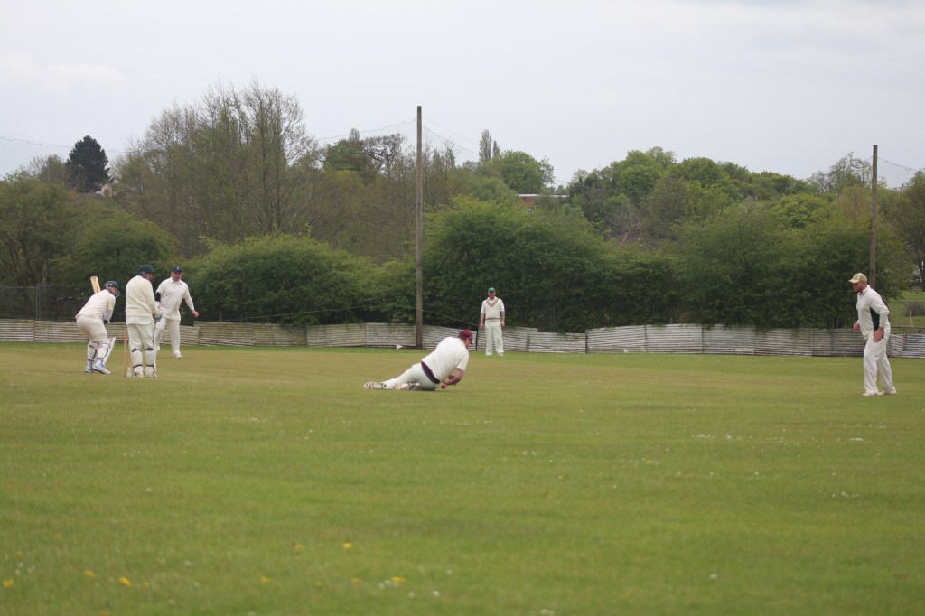 Abbots Bromley came out to bat with Ronson and Lowther opening up. Club pro D.Dunn started up and was successful in his first over claiming Ronson for 0. C Hall had similar success from the other end claiming Lowther for 0 with a sharp catch at mid-on by Nunns. With some good disciplined bowling from the openers, and some excellent fielding notably from R Fell and N Reeves , Abbots Bromley struggled to get going. Eventually, C Hall claimed the wicket of Mitchell after he took a particular liking to the club pro’s bowling. The first change bowler R Fell, bowled well all game to be fair but was not successful in claiming the wicket he sought. Meanwhile at the other end, the right arm slow of Chuck, we can hardly call them spinners at the pace some of those balls came down, set about picking holes on the Abbots Bromley batting, claiming 2 wickets in his first over. He continued to bowl tight, with the exception of when young S Davies began to send the ball disappearing over Chucks head with increasing frequency, many a cries of “toss the ball higher” seemed to fall on the deaf ears of Chuck. After some grumbling, he eventually got Davies when he walked down the wicket and Gorton, who in his usual form of whipping the bails off at every convenience to keep the guillotine sharp, stumped the youngster for a well batted 11. Haywood at the other end was very watchful and pushed the ball into gaps more often as the game progressed provided the visitors with some means of accumulating runs but when Chuck claimed the 4th wicket LBW of Bexon, things looked pretty dire for the visitors. Armstrong removed Haywood for 18 but Abbots Bromley continued to fight with some excellent rear guard action by Kirkland and Cantrill seeing them make their 40 overs with wickets still to spare, despite some tight bowling from Armstrong and Dave Preece. Abbots Bromley finished on 90-9 after their 40 overs.