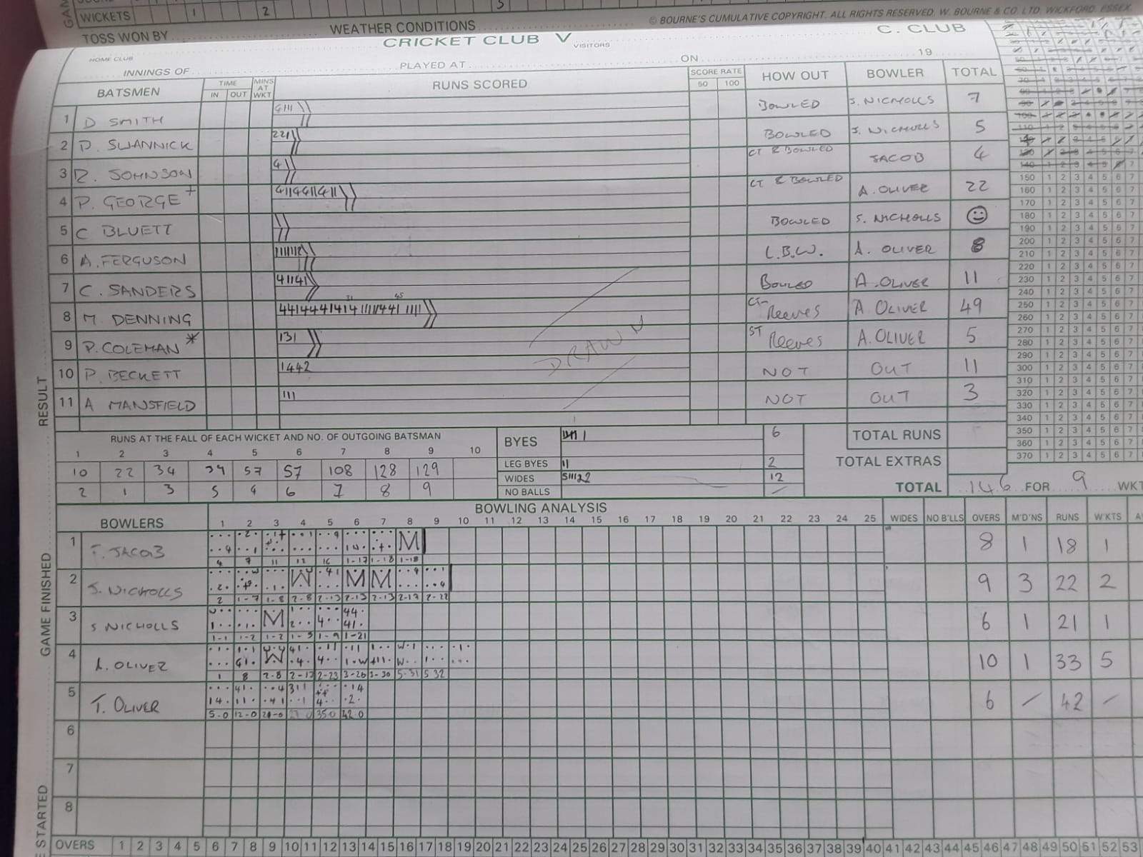 George was supported at the other end by a novice from the Elf’s bowling academy. This was to be Nathan Reeves. Not known for his bowling exploits, Nathan came on to show what he could do and he didn’t disappoint. He took his first wicket after bowling Walker for 1. Could this be a new beginning for Reeves as a bowler? He didn’t have to wait long for his second wicket where he once again bowled the batsman in the same fashion as the first for 1 again. As the two wickets went down the man with the gloves down the other end could be heard saying, “only another 200+ to go”. By the end of his 4 overs, Nathan had taken 2 wickets for 23 runs. His bowling deserved more than the two wickets he came away with. However, he hadn’t even batted yet.