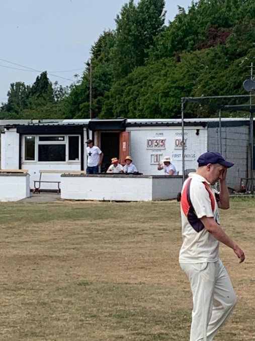 Stenson was in at 4 and attempted to run DS out before, in his own words, throwing the game for a well-made 32, a big score surely around the corner for the batsman though we’ll now have to wait until next year to see. Dan Dunn came in next and followed next for 4. But all the while, the story of the day, DS was still going strong at the other end. 40 not out at drinks, he took a few swooshes after refreshments but managed to get through for his 50. The remaining Springhill Seven rose to their feet as a slash-through gully bought a well-made 50 for the Chairman. A top knock DS.
