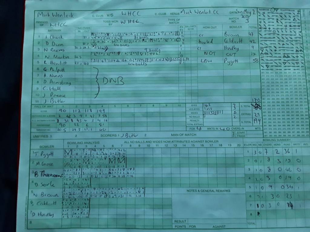 Despite their super effort, Much Wenlock fell 11 runs short, but it was agreed by all who took part that the game of cricket was truly the winner.