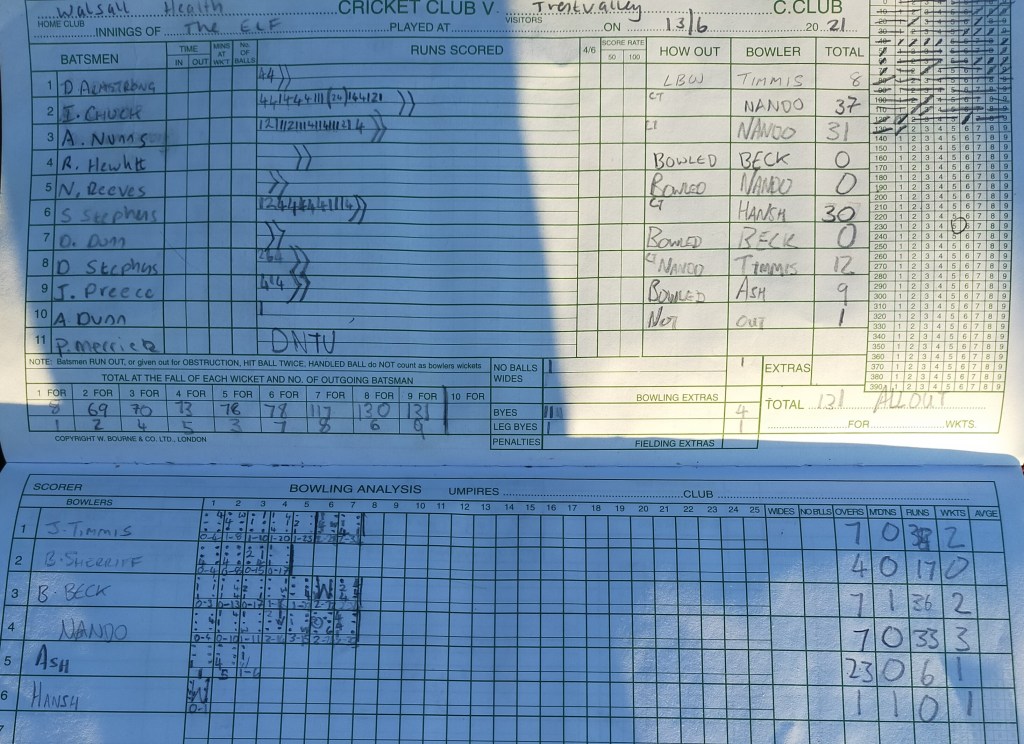 The Elf are at home next week against Lichfield Nomads, another fixture that has been played for as long as the mind can remember. Hopefully see you all next week. No tea or shower club this week due to restrictions although it was nice and village seeing a few of the lads turn up in their whites.