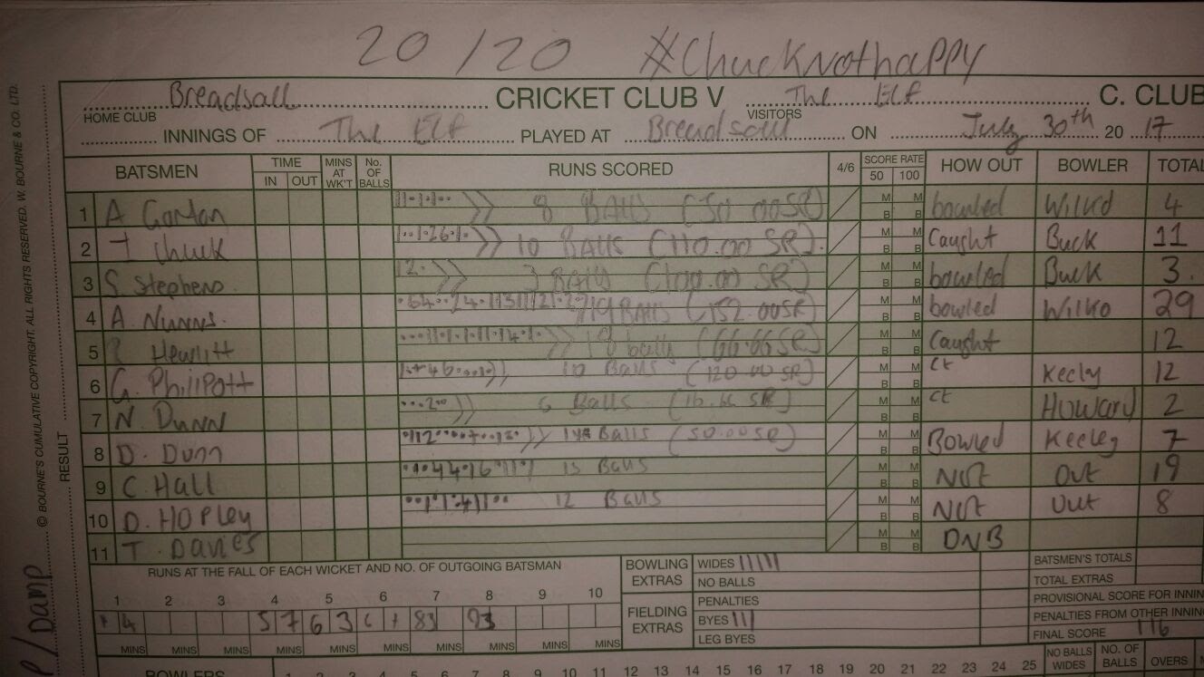 Chuck seemed to take an age to get into the forties but when he did, there were muted celebrations when Chuck hit a single to reach fifty, the whole squad knowing he was five away from greatness.