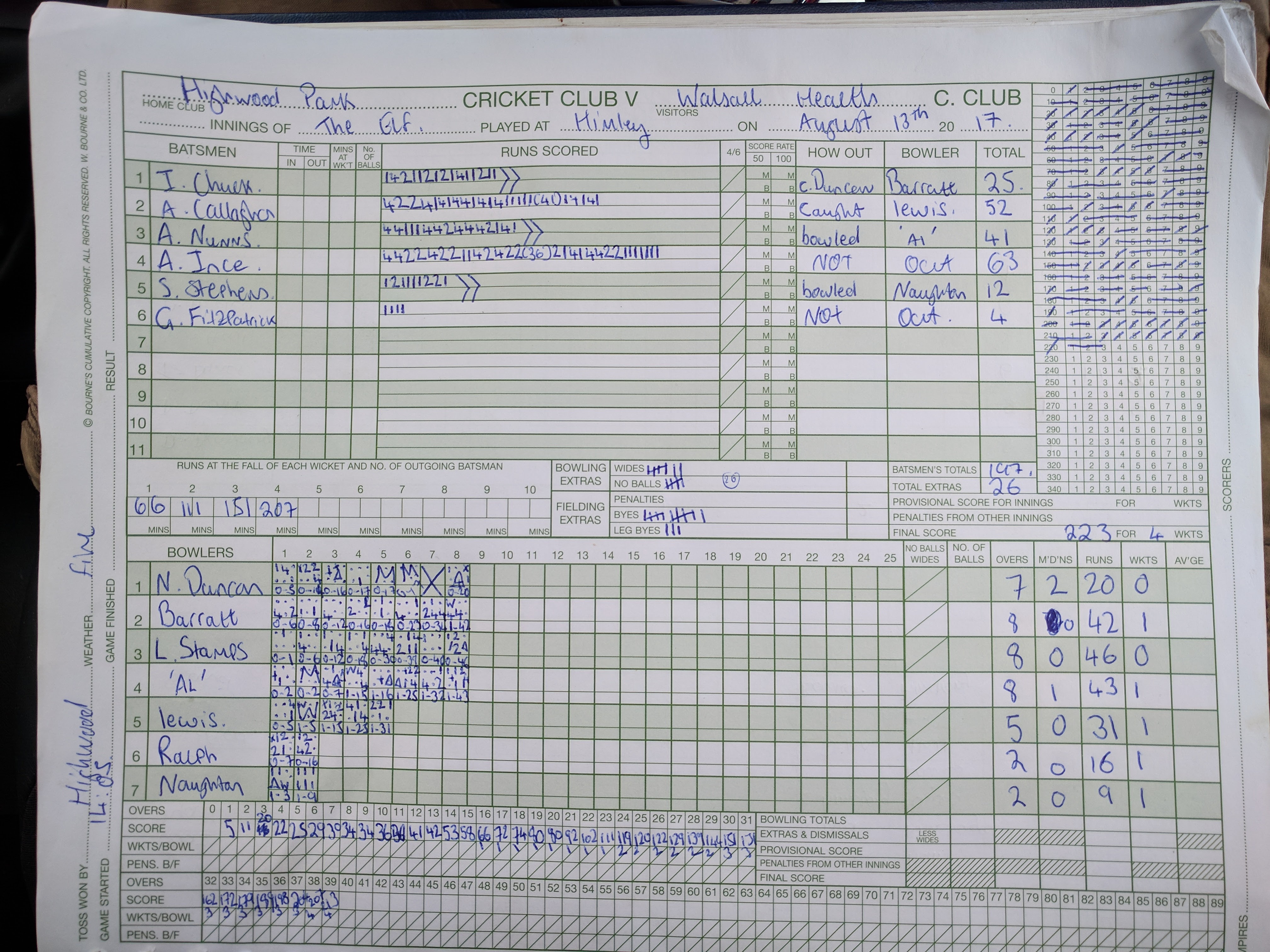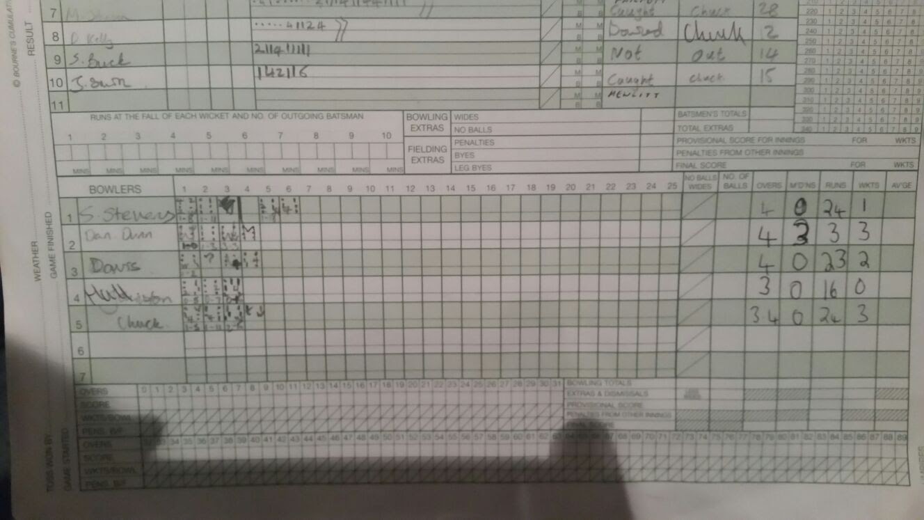 Andy Carrick hit a couple of boundaries on his way to 12 not out but the one thing the Elf wanted to see was Alex Nunns reach his ton but it was not to be, eventually bowled for 94 but still another record set, this was Al’s highest score for the Elf.